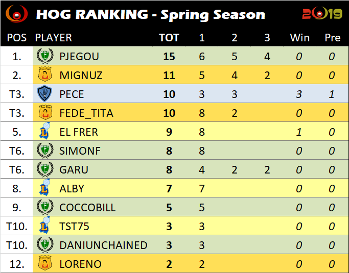 HOG RANKING – SPRING SEASON Questo topic ha 92 risposte, 19 partecipanti ed è stato aggiornato l'ultima volta 6 anni, 10 mesi fa da U.S.O.. Stai visualizzando 15 post - dal 46 a 60 (di 93 totali) ← 1 2 3 4 5 6 7 → Autore Post 9 Maggio 2019 alle 21:44 #30538 Pigi47Partecipante OfflineMessaggi:924HoG D.O.P.Punti: 1.905 Vai COCCO sei tutti noi! 10 Maggio 2019 alle 8:52 #30539 lorenoPartecipante OfflineMessaggi:55Double bogeyPunti: 290 Ciao a tutti! Se ho ben capito quest’anno basta postare i risultati fatti…. Domani prima gara dell’anno, vi farò sapere Buon golf a tutti!!! 13 Maggio 2019 alle 0:42 #30555 TST75Partecipante OfflineMessaggi:244ParPunti: 1.150 Gara sabato 11 maggio all’Ambrosiano 33 punti 13 Maggio 2019 alle 8:28 #30560 TST75Partecipante OfflineMessaggi:244ParPunti: 1.150 Bravo Cocco!!!!!! 13 Maggio 2019 alle 9:11 #30563 ELFRERPartecipante OfflineMessaggi:818HoG D.O.P.Punti: 2.825 complimenti TST75. entri in classifica e porti acqua fresca al lago ( oddio non è che il garda in questo momento ne abbia bisogno…..). scherzo ovviamente.ancora bravo! 13 Maggio 2019 alle 9:16 #30564 TST75Partecipante OfflineMessaggi:244ParPunti: 1.150 Grazie capitano. Faccio del meglio e punto ad abbassare l’handicap!! 13 Maggio 2019 alle 10:29 #30565 MignuzPartecipante OfflineMessaggi:733HoG D.O.P.Punti: 1.770 Un 32 sabato 11 maggio GC Asolo 13 Maggio 2019 alle 11:24 #30569 lorenoPartecipante OfflineMessaggi:55Double bogeyPunti: 290 Copio il capitano 32 punti al G.C. Eppan (Blue Monster) sabato 11 maggio Non male per la prima gara dell’anno Ci riprovo a Lana venerdì prossimo 15 Maggio 2019 alle 12:54 #30621 U.S.O.Partecipante OfflineMessaggi:304BirdiePunti: 1.605 Pjegou, con i suoi Bagnacauda&Caseula sempre leader. 16 Maggio 2019 alle 7:43 #30623 DaniUnchainedPartecipante OfflineMessaggi:681CondorPunti: 1.265 Finalmente in classifica, 15/5 Golf Boves – 33 punti 16 Maggio 2019 alle 11:21 #30625 garuPartecipante OfflineMessaggi:265ParPunti: 900 DaniUnchained wrote: Finalmente in classifica, 15/5 Golf Boves – 33 punti Era ora ! 16 Maggio 2019 alle 12:20 #30626 U.S.O.Partecipante OfflineMessaggi:304BirdiePunti: 1.605 Si rivede il defending champion Daniunchained. Questa risposta è stata modificata 6 anni, 11 mesi fa da U.S.O.. 19 Maggio 2019 alle 12:02 #30633 Aquila80Partecipante OfflineMessaggi:509AlbatrossPunti: 1.180 Finalmente prima gara dell’anno ma inutile per la classifica… 30 punti al Nazionale lunedì 14 20 Maggio 2019 alle 9:08 #30636 PjegouPartecipante OfflineMessaggi:327BirdiePunti: 1.200 36 punti bagnati ieri al Città di Asti 20 Maggio 2019 alle 10:00 #30638 PecePartecipante OfflineMessaggi:119BogeyPunti: 415 Buongiorno 19/5 San Vigilio altro 33 grazie Autore Post Stai visualizzando 15 post - dal 46 a 60 (di 93 totali) ← 1 2 3 4 5 6 7 → Devi essere connesso per rispondere a questo topic. Accesso Nome utente: Password: Mantienimi connesso Accesso