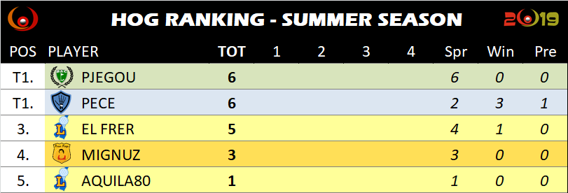 25 Giugno 2019 alle 8:46 #30864Entriamo nella fase calda, anzi torrida, il Frer e Mignuz cominciano con un bel 37. Sarà una lotta a 4 con Pjegou e il Pece o ci sarà una sorpresa come fu Marmac lo scorso anno?