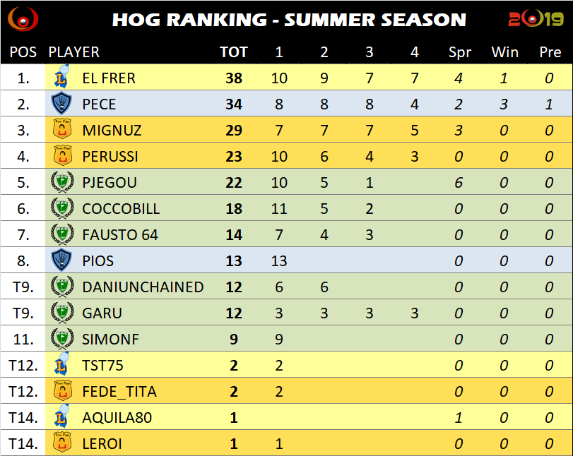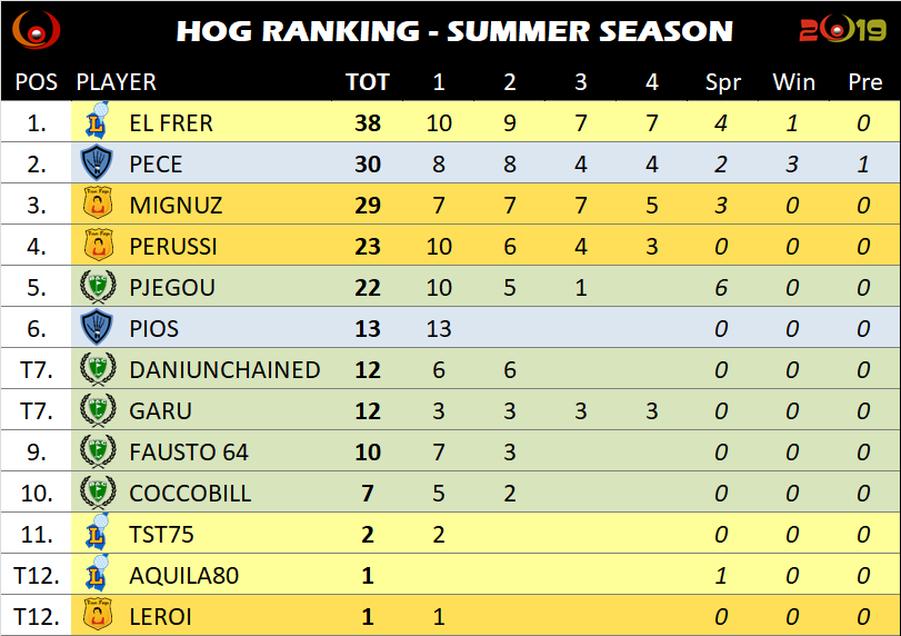 9 Agosto 2019 alle 8:52 #31261La lotta per l’accesso ai playoff si fa calda, con FAUSTO che entra nella Top Eight.