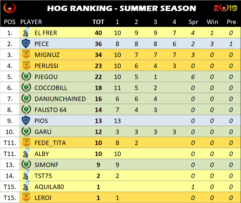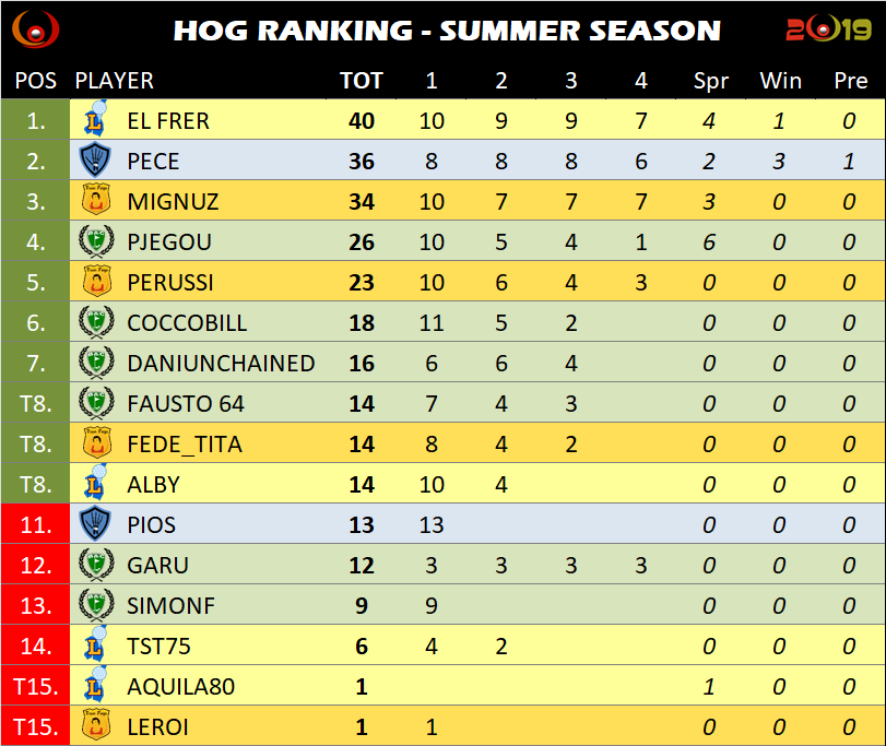 40-39-39-37 il Frer continua a picchiarla dura e allunga sul Pece (38-38-38-36). Com’è che il Mignuz gioca così bene? 40-37-37-37, andare un po’ a lavorare no?