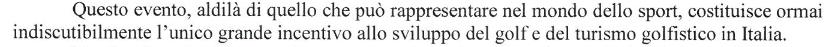 del turismo me lo auguro per gli albergatori, ma dello sviluppo del golf non credo, dato che poi i circoli non sono preparati a gestire nuovi ingressi. Io stò scappando dal mio circolo perchè non perdono occasione di farmi sentire come un pezzente in quanto abbonato campo pratica.