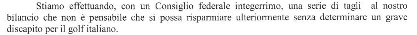 Come “azionista”, come tesserato, come bancomat federale e come appassionato di golf, malgrado le istituzioni nazionali, mi ritengo deluso ed insoddisfatto.