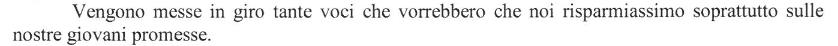 Almeno sappiamo che a fronte dell’attuale aumento di quota non verranno modificate (sic.) le attività formative, sportive ed agonistiche unito al fatto che non ci saranno risparmi sulle giovani promesse.