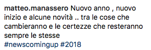 11 Ottobre 2018 alle 12:42 #27018L’8 gennaio, proprio da Instagram di Matteo il SUO augurio per una stagione al top…