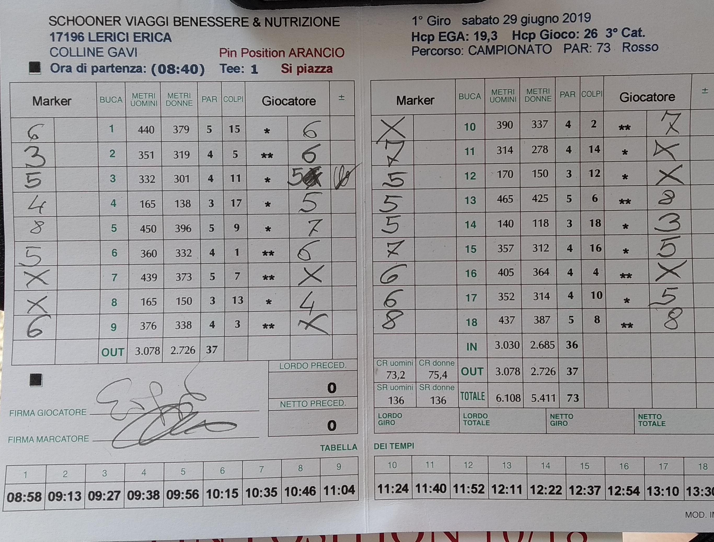 22 Giugno 2019 alle 19:19 #30850Oggi gara, tee shot ore 9.20, tempo caldo ma ventilato. I compagni simpatici e conviviali.