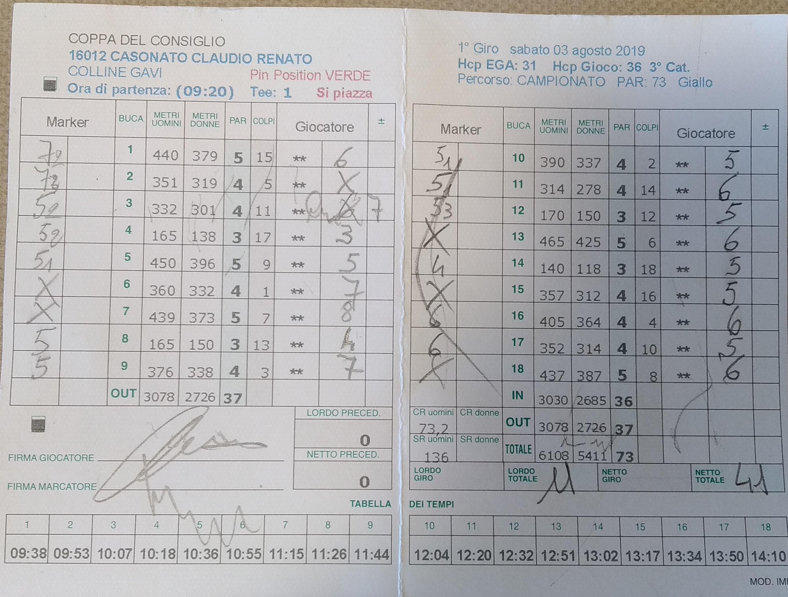 Quindi, ai fini della gara (e dell’HoG ranking, a quanto ricordo) hai fatto 41, ai fini dell’hcp hai fatto 43 con relativo abbassamento