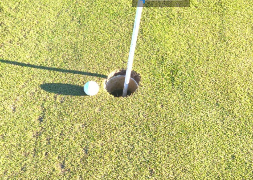 2EX par 4: driver a tagliare il dogleg a destra. Sarò strano, ma mi trovo molto meglio con il drive che con il W3 o l’ibrido… comunque, drive di 186 mt, palla un po’ più a dx di quello che volevo che mi resta 3 metri nel rough, ma ben messa, a 77 mt dall’asta. Palla più alta dei piedi, piglio il SW, impugno basso, colpo pieno, attento a non andare a destra… vado a sinistra, ma perfettamente in green, con un enorme pitch mark (il mio PRIMO pitch mark!) e palla a 4 mt dalla buca. La mia PRIMA palla da birdie in un par 4!!! Put in salita con dosso… corto di mezzo rotolo… ma che buca!!!