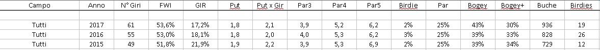 A livello statistico è cambiato poco rispetto agli anni precedenti, anche se ho giocato molto meno rispetto agli altri anni (solo 4 volte) su di un campo facile come il città di asti, quindi in linea di massima le statistiche sono leggermente migliorate.
