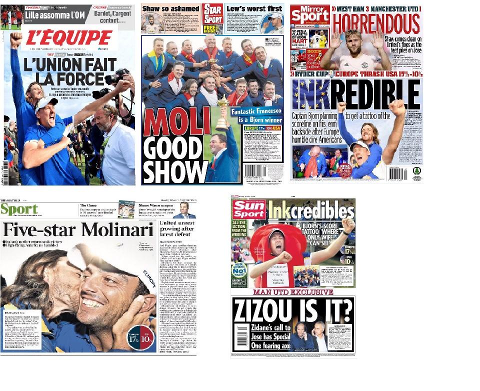 Sulla carta stampata non so, ma sui siti web delle principali testate c’è un articolo.Concordo che forse sarebbe il caso di sfruttare mediaticamente la prestazione di Molinari, che oltrettutto si aggiunge alla recente vittoria di un Major.