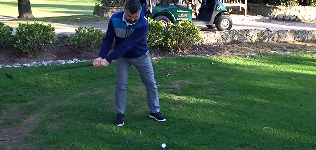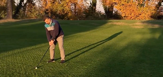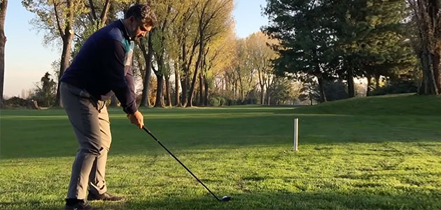 Il secondo colpo giocato con l’Ibrido (minuto 6:09) offre invece un feeling più comodo, lo shaft più corto consente di posizionarsi meglio sopra alla palla e quindi controllare meglio il colpo a spazzolare verso la bandiera.