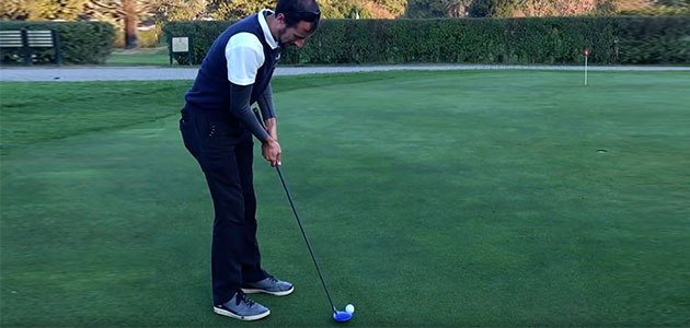 Quindi si accorcia il grip sul legno e giocandolo come un putt si tira verso l’asta.